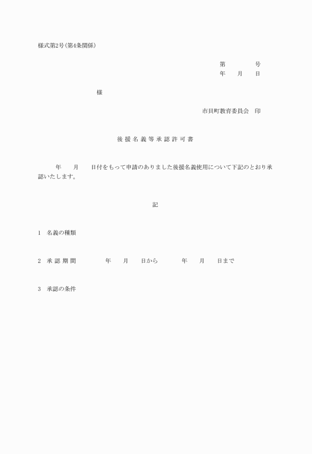 ○市貝町教育委員会後援名義等の使用承認に関する規程