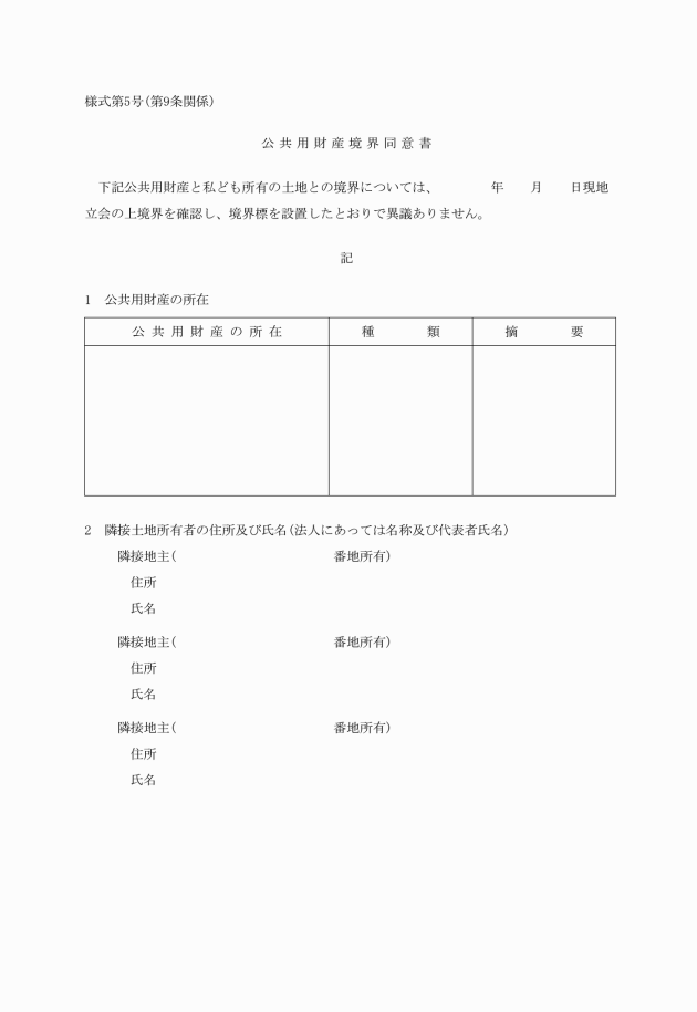(2) 隣接土地所有者の境界同意書(様式第5号)