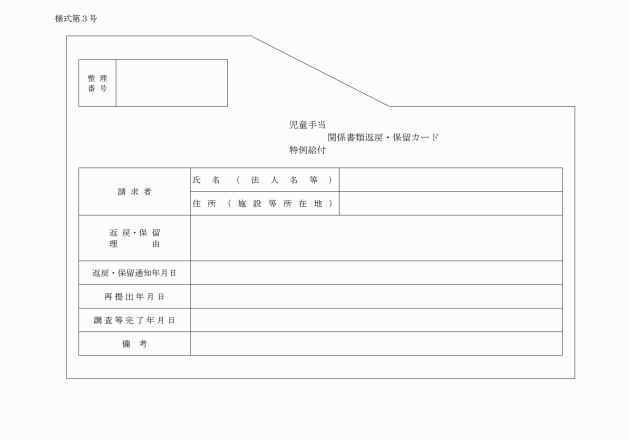 3 第1項の規定によって審査した結果、届出に係る事実がないことを確認したときは、受給者台帳(一般受給者用)の備考欄に額改定届を返付した旨を記入し、受給者に返付するものとする。