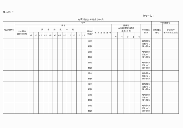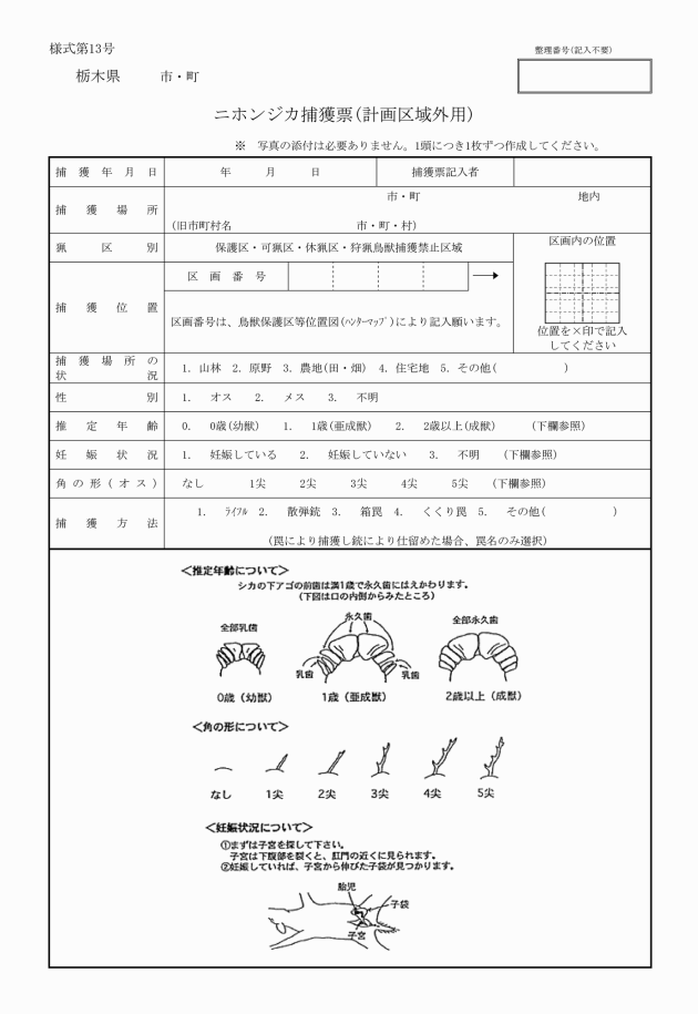 町長は、次に該当する許可をする場合には、申請者に対し捕獲票(様式第13,14,15号)及び必要な資料等により捕獲状況等を随時報告するよう求めるものとする。