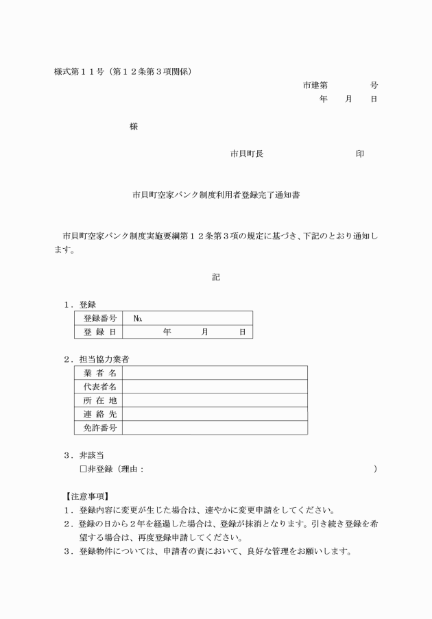 2 町長は、前項の規定による申込みがあったときは、当該登録物件の物件登録者及び宅建協会に対し、申込みがあったことを通知するものとする。