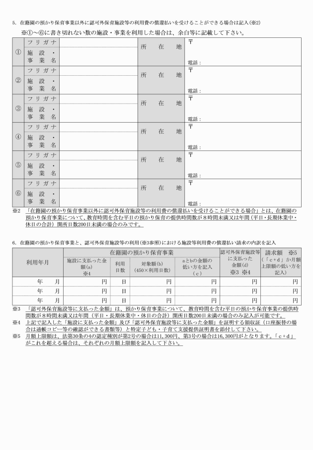(2) 法第7条第10項第4号に掲げる施設又は同項第6号から第8号までに掲げる事業 施設等利用費請求書(償還払い用)(様式第11号)