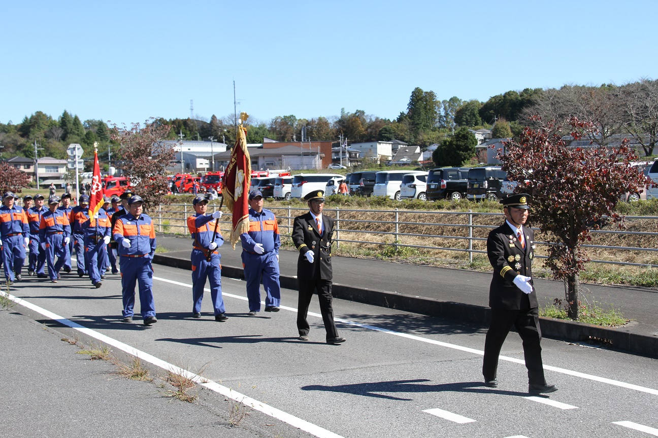 団員や消防団車両のほか、真岡消防署の梯子車や市貝分署の消防車・救急車が行進します。