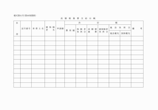 第46条 高額療養費の支給に関しては、高額療養費支給台帳(様式第41号)に記載して処理するものとする。