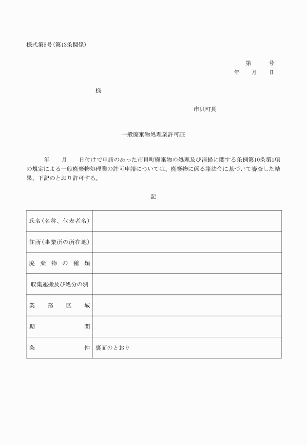 ○市貝町廃棄物の処理及び清掃に関する条例施行規則