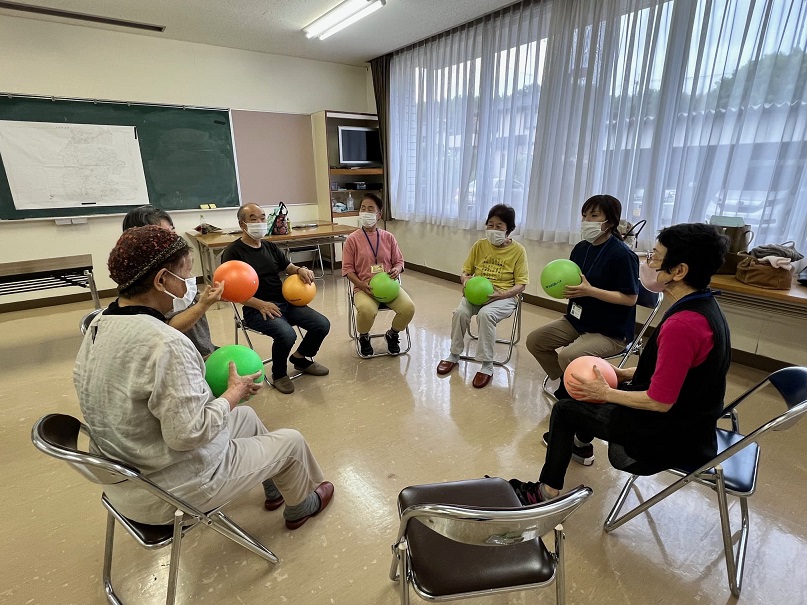 座ってできる運動や頭の体操、脳トレプリントなどを行っています。