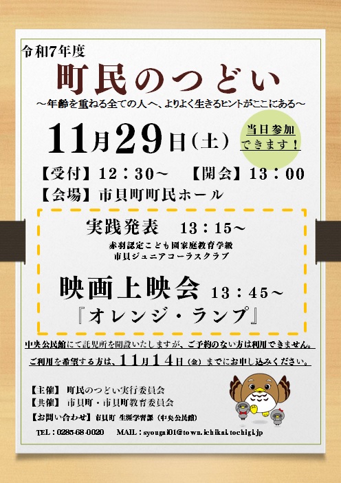 【場所】 市貝町町民ホール
